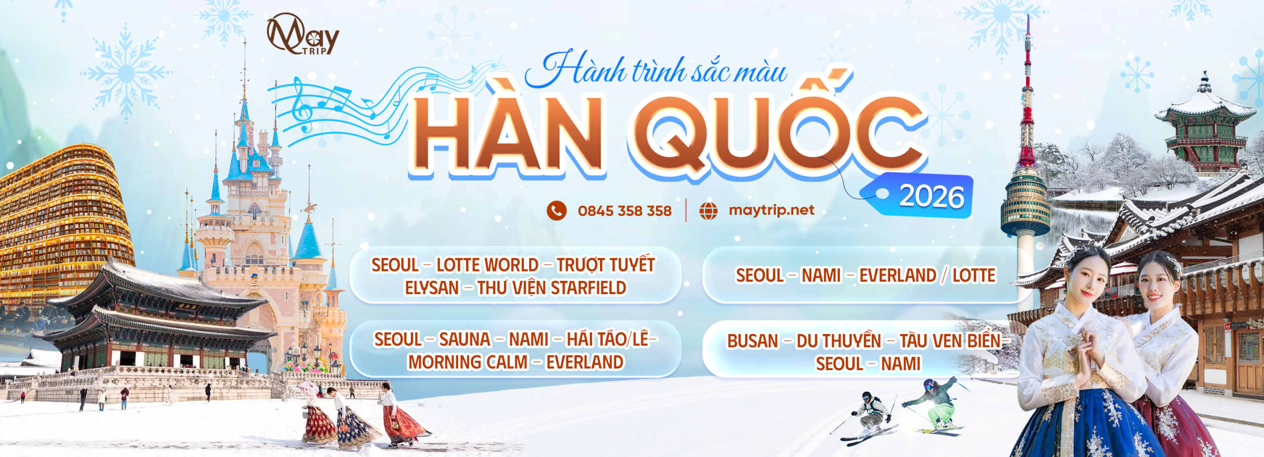 Tour Hàn Quốc Tết Âm Lịch 2026: Seoul – Lotte World – Trượt Tuyết Elysan